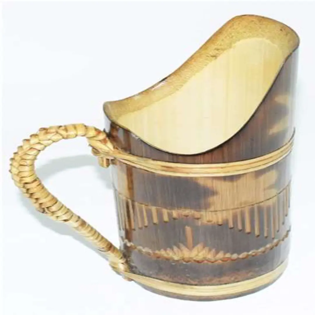 This handcrafted bamboo jug is carefully made from naturally seasoned bamboo and shaped by skilled artisans to achieve both functionality and visual appeal. The smooth inner surface and sturdy bamboo structure make it suitable for serving water and traditional beverages while maintaining a natural, eco-friendly character.
