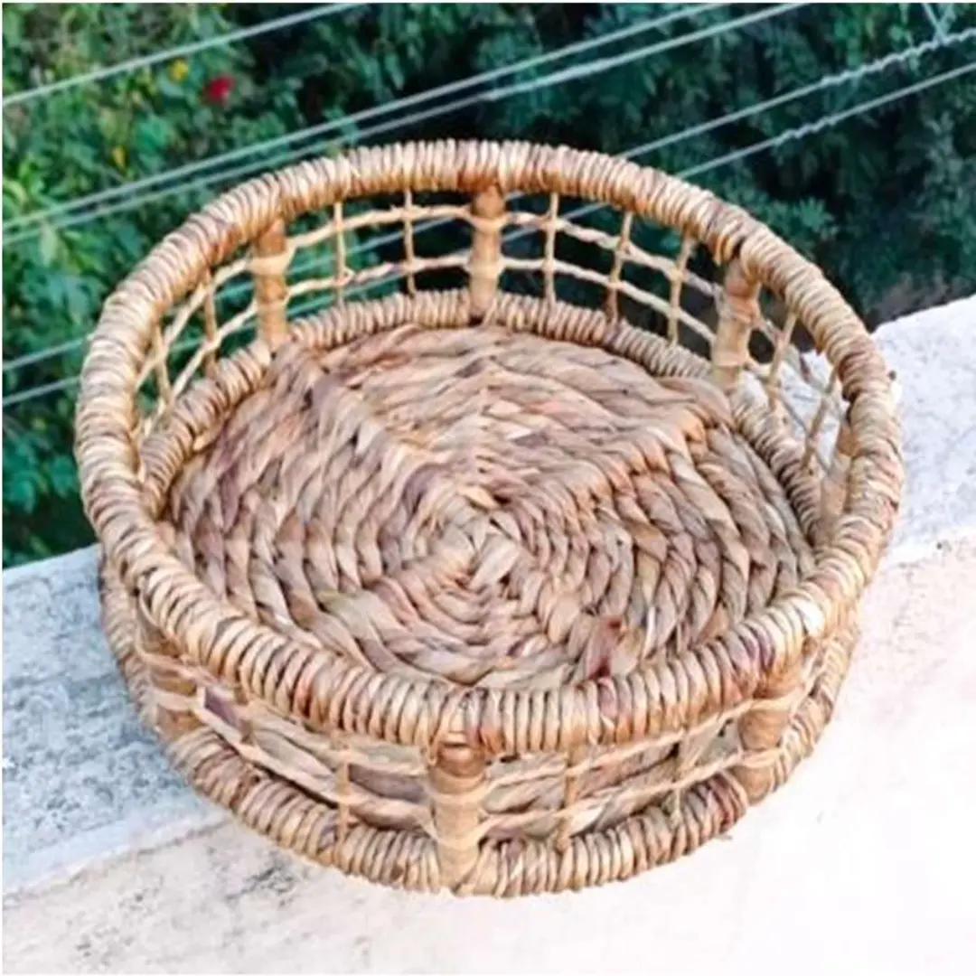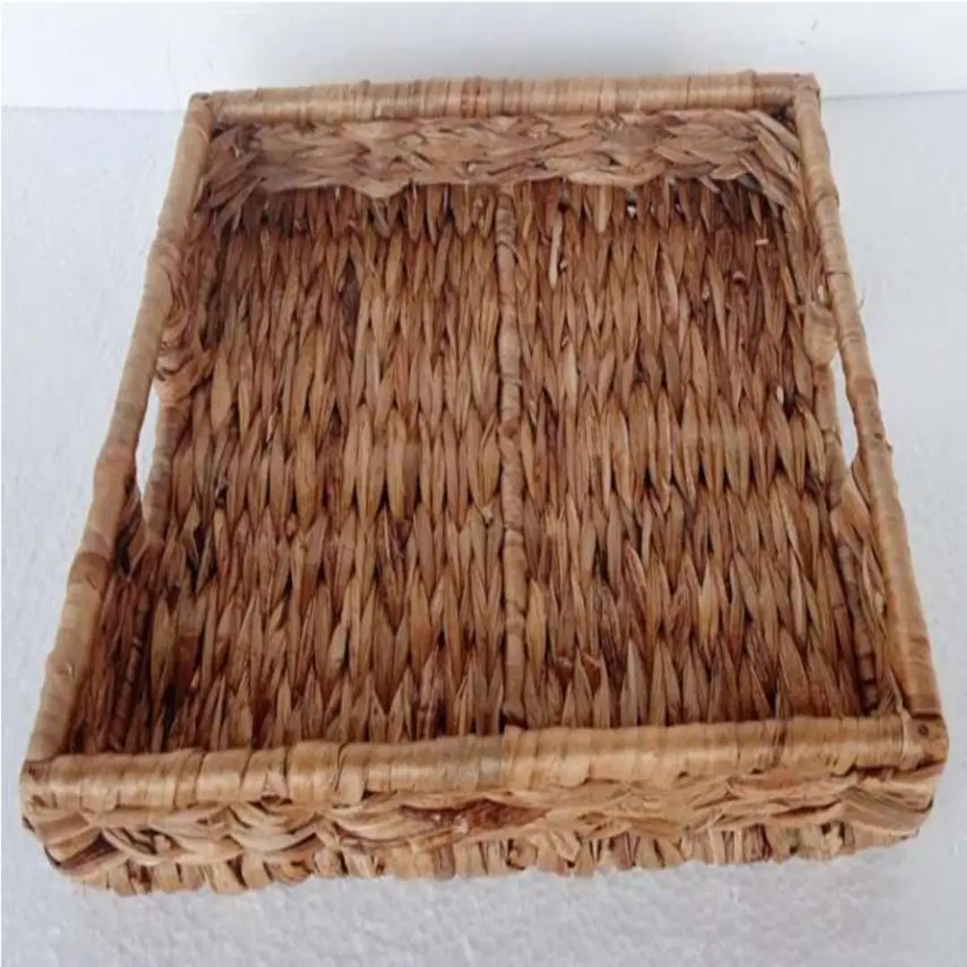 This handmade water hyacinth tray is crafted using naturally dried water hyacinth fiber, woven by skilled artisans to achieve a strong yet refined structure. The dense weave and balanced base provide durability while maintaining a natural, premium appearance suitable for international markets.